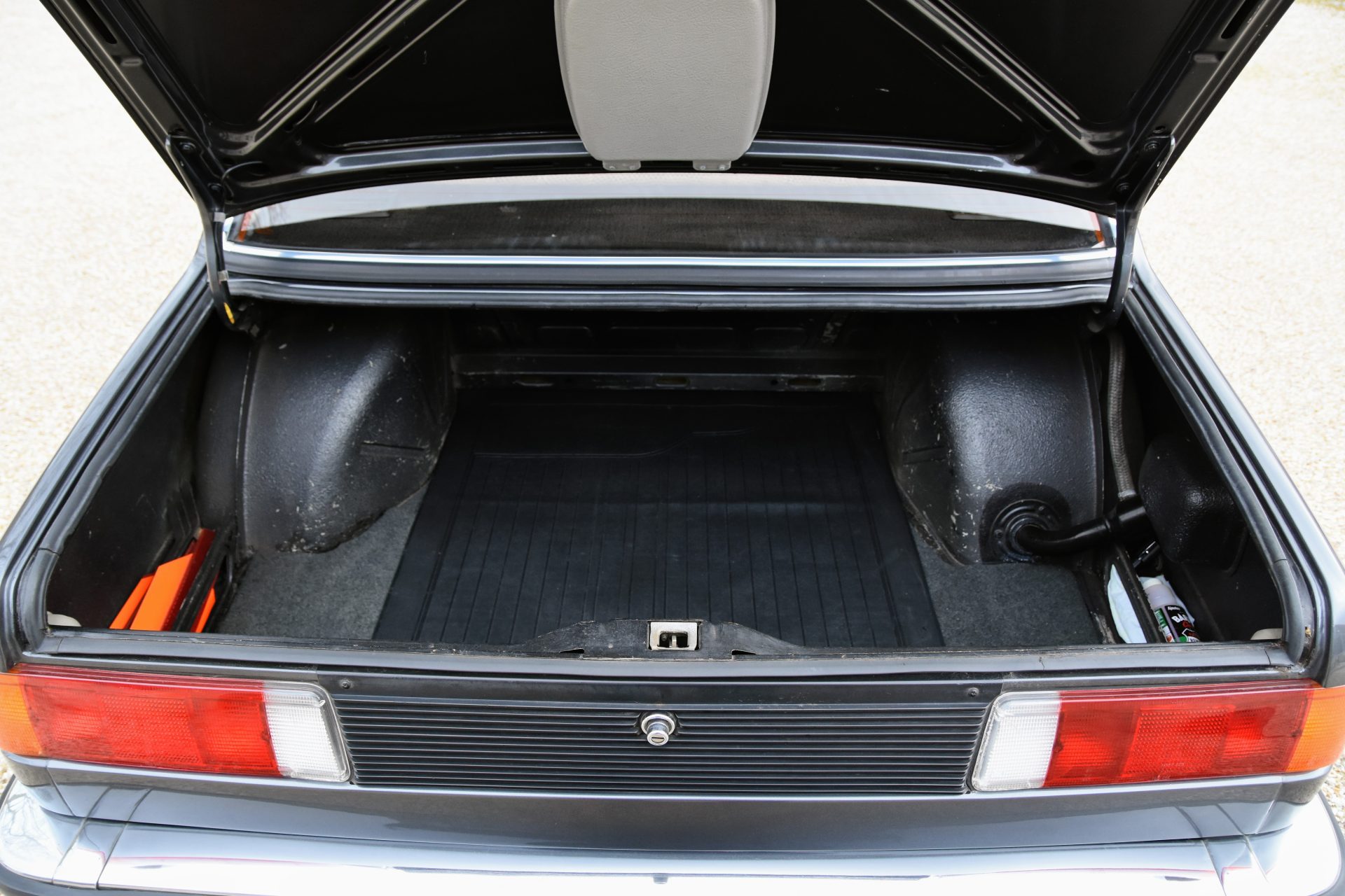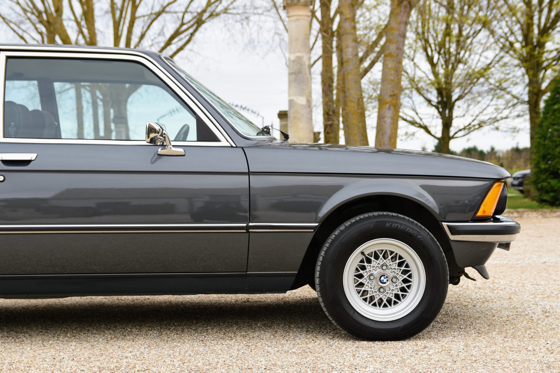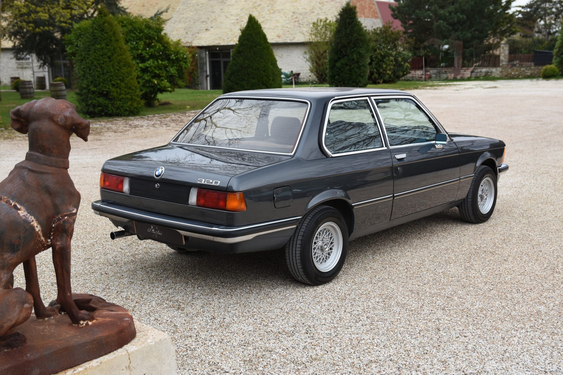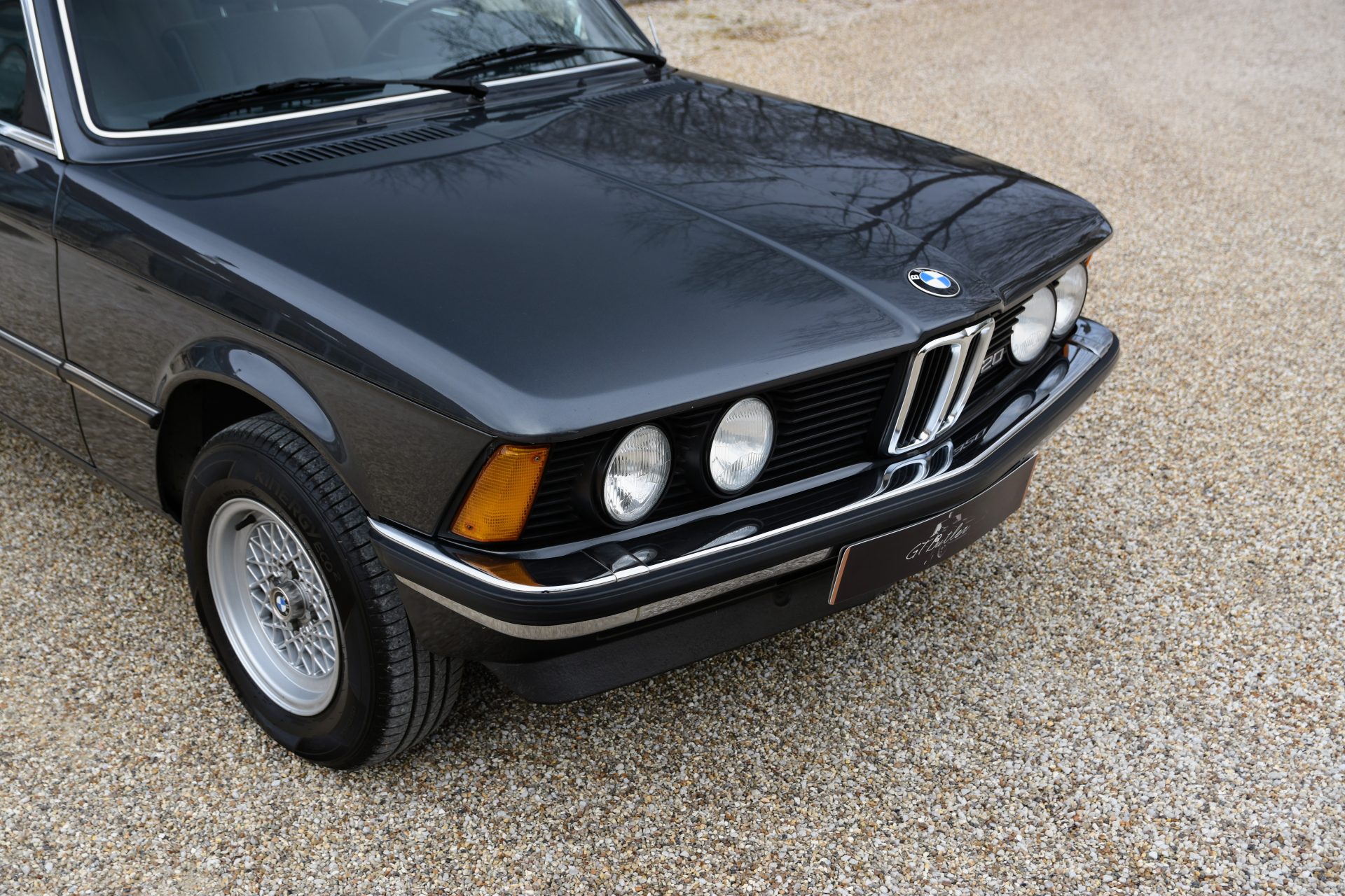 Cette série 3 a été livrée en Août 1981 dans sa jolie teinte Graphit Metallic d’origine, avec les iconiques jantes BBS en aluminium. À l’intérieur, on retrouve un beau volant trois branches BMW en cuir ainsi qu’une sellerie en velours gris.