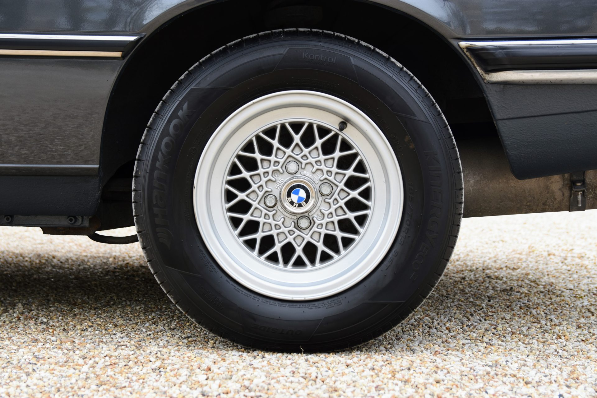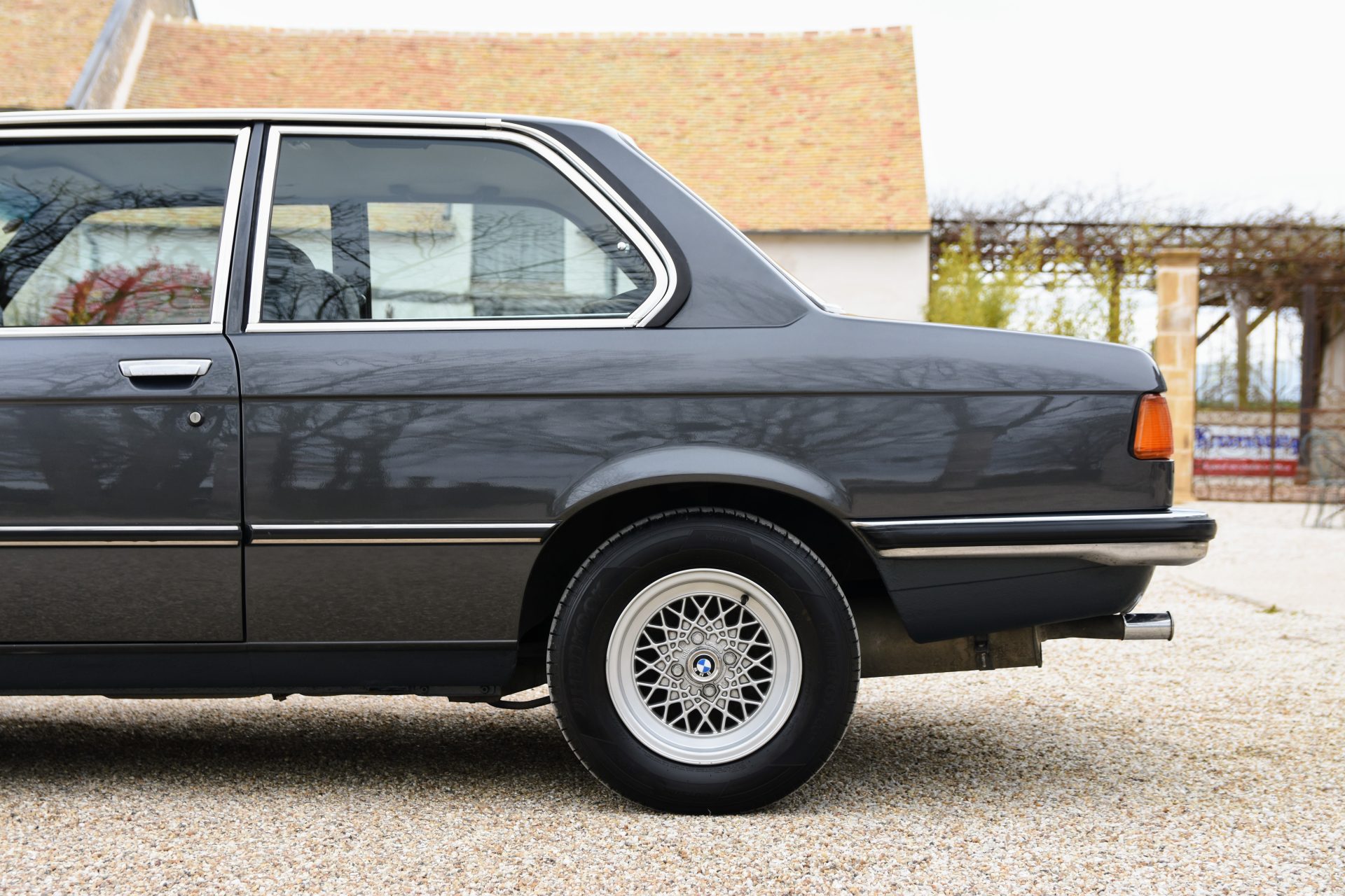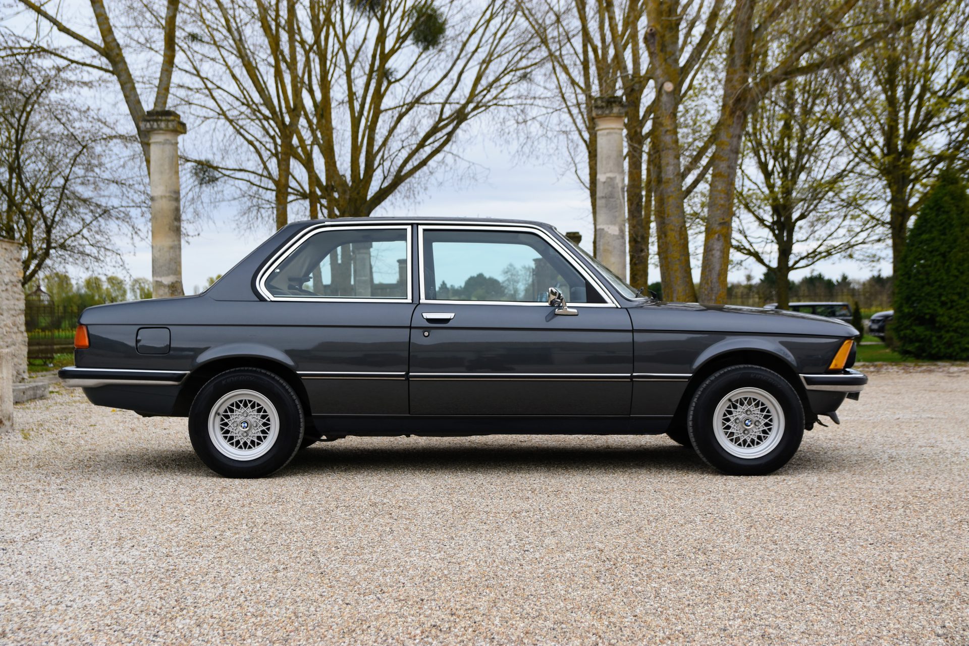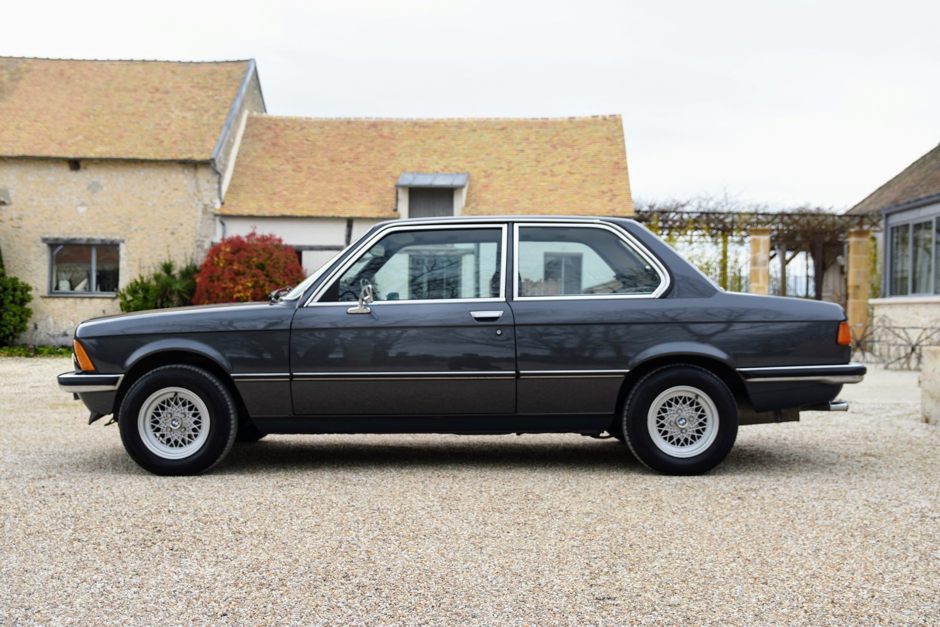 Cette série 3 a été livrée en Août 1981 dans sa jolie teinte Graphit Metallic d’origine, avec les iconiques jantes BBS en aluminium. À l’intérieur, on retrouve un beau volant trois branches BMW en cuir ainsi qu’une sellerie en velours gris.