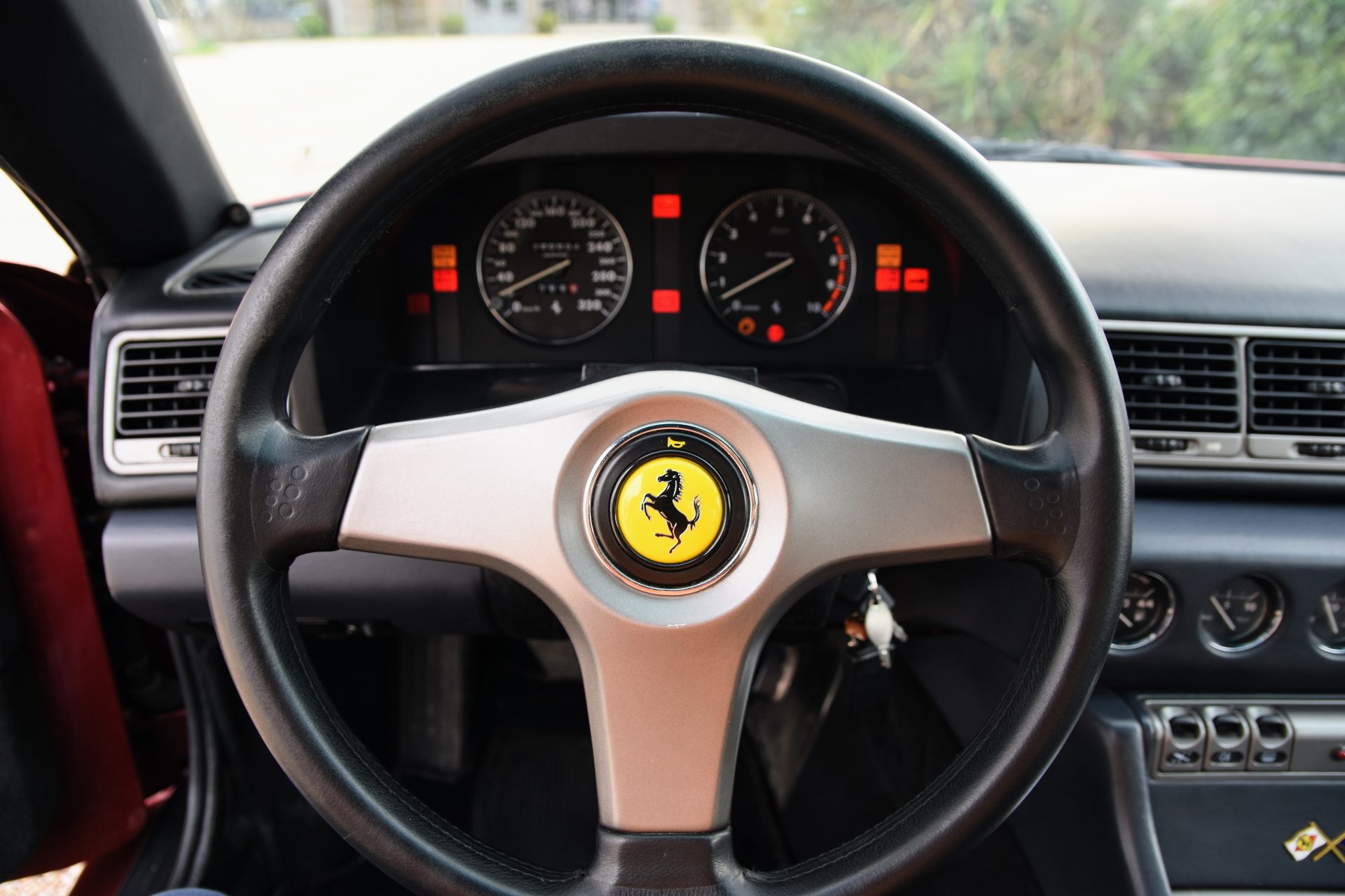 Le véhicule est dans un très bel état d’origine. La carrosserie couleur Rosso Metallizzato ne présente pas de défauts majeurs, on notera quelques micro-rayures et griffures qui pourront facilement être reprises par un lustrage. Les 4 jantes d’origine en magnésium sont en bon état, l’avant-droite et l’arrière gauche présentant quelques légères rayures sur leur pourtour.