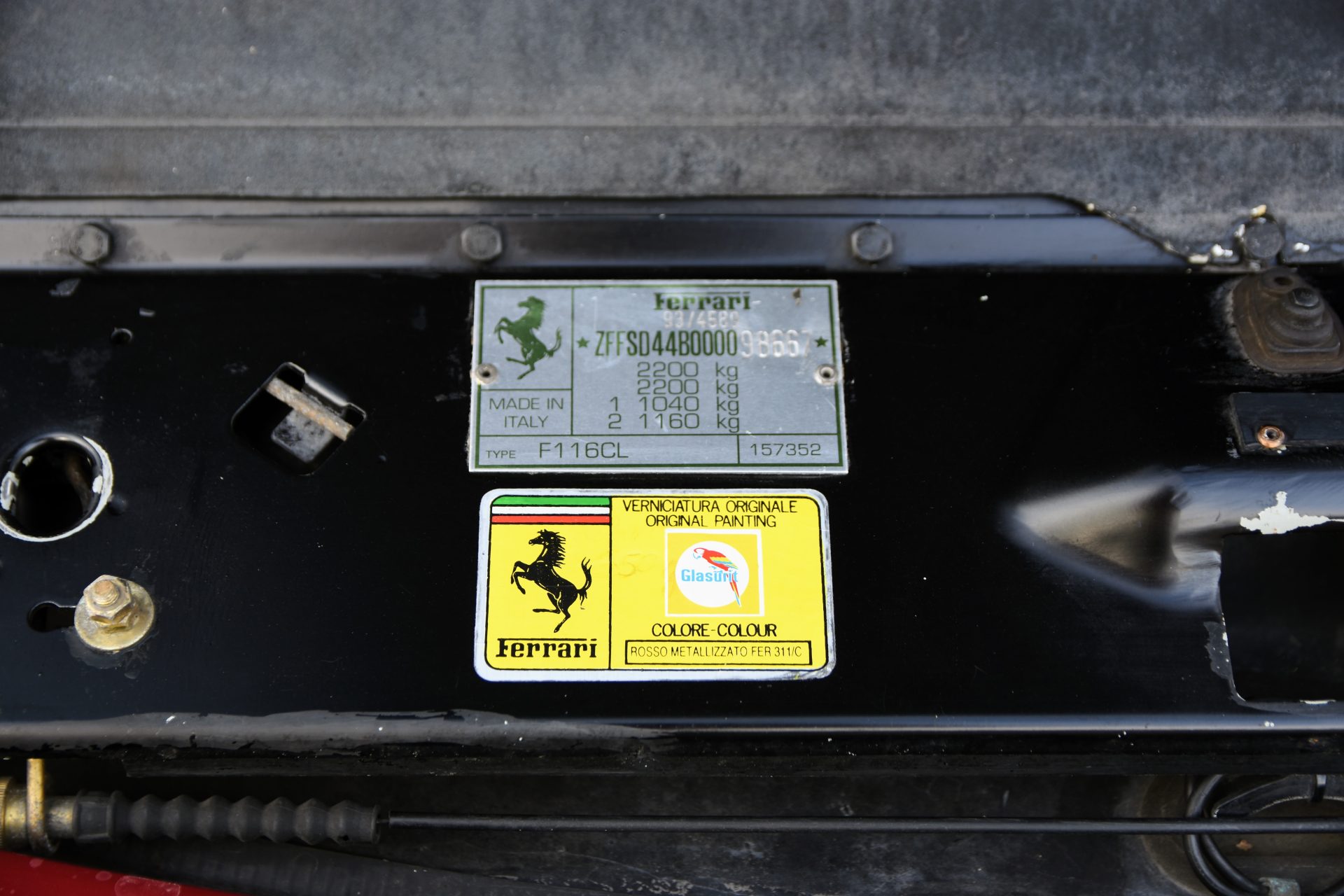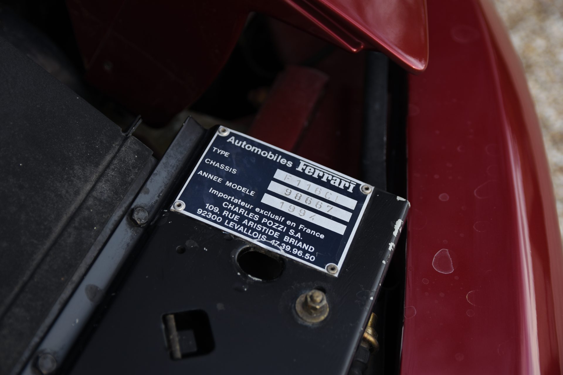 Cet exemplaire a été livré neuf en France, dans la concession Charles Pozzi de Levallois-Perret en Avril 1994. Son premier propriétaire, M. Marcel Guittard, était le gendre de Henry-Louis Vuitton. La famille Vuitton est connue pour commander des configurations sobres et élégantes et cet exemplaire n’échappe pas à la règle avec sa superbe peinture Rosso Metallizzato, associée à un élégant intérieur en cuir Grigrio Scuro offrant des reflets bleutés. Les jantes en magnésium grises complètent parfaitement la configuration.